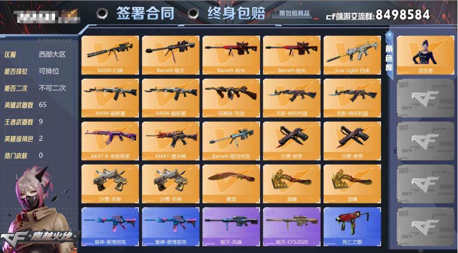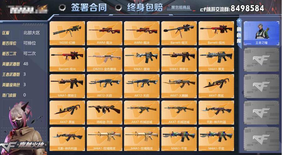 山西一区-52V-3王者武器数-0炫金武器数 【热门武器】:QBZ03-金色蔷薇,M200-幻神,