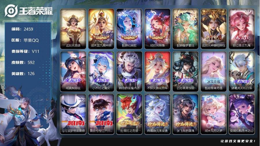 【王者荣耀】【商品标题】:103段小国分路游走,1.7w大国鲁班大师,1.8w大国太乙真人,1.7w大国孙膑,1.6w大国庄周,1.7w大国蔡文姬,1.7w大国朵莉亚,1.5w大国大乔,1.5w大国瑶,1.5w大国明世隐,多小国万战,592皮110传说9珍品传说9无双3典藏1珍品无双9天幕5星传说1小兵皮肤满级灵宝,苹果Q-V11-最强王者段位-126英雄-592皮肤-3典藏-1珍品无双-9无双-9珍品传说-110传说-211史诗 【荣耀典藏】:武则天英雄,花木兰九霄神辉,貂蝉幻阙歌,瑶拾光映像 【珍品无双】:貂蝉馥梦繁花 【无双皮肤】:武则天神器明辉仪,妲己青丘九尾,瑶真我赫兹,小乔时之魔女,韩信群星魔术团,不知火舞花合斗,公孙离离恨烟,甄姬雪境奇遇,诸葛亮天机白泽 【珍品传说】:马可波罗怪盗基德,鲁班七号江户川柯南,孙策时之奇旅,嫦娥器灵落星盏,张飞兔狲蓬尾,瑶大耳狗之梦,安琪拉酷洛米之心,暃朽木白哉,宫本武藏黑崎一护 【传说皮肤】:干将莫邪千山共赴,元歌诡秘之主,大司命死亡执政官,司马懿九山相柳,公孙离云诺千山,西施续相思,杨玉环星之鸣奏,司空震愿照山河定,女娲愿照千秋盛,妲己愿照众生和,澜愿照九州拓,蔡文姬愿照福禄聚,虞姬愿照岁时盈,云缨幻光神枪,王昭君映山客,桑启鸣野蒿,庄周牧神诗旅,夏侯惇霜北刀,铠冥王哈迪斯,朵莉亚心动手记,云中君群星魔术团,墨子黄金天蝎座,海月金乌负日,亚连落雪白狼,吕布曦玄引,貂蝉曦玄引,典韦战鼓燎原,孙尚香乘龙问璇玑,孙策乘龙淬吴钩,赵云乘龙铭钟鼎,马超琥珀纪元,铠琥珀纪元,澜逐花归海,艾琳觅芳踪,露娜霜月吟,孙膑小动物乐团,狄仁杰夜礼服假面,王昭君永恒水手月亮,甄姬至美化雀舞,大乔时之奇旅,鲁班七号时之奇旅,兰陵王影龙天霄,吕布遇见神鼓,宫本武藏惊梅引,云缨鹤归松栖,上官婉儿妄想奇谈,马可波罗妄想实况,东皇太一灼幽烈阳,诸葛亮鹤羽星尊,澜电玩雷克斯,张飞百相守梦,公孙离记忆之芯,夏洛特浮生妄,干将莫邪画中仙,花木兰燃星之曲,虞姬无限倾心,项羽无限倾心,伽罗炽翼辉光,孙悟空齐天大圣,小乔山海琳琅生,曜山海苍雷引,李信山海炽霜斩,吕布怒海麟威,李白诗剑行,狄仁杰神器狴犴令,不知火舞绯月行,王昭君星穹之声,百里守约碎云,橘右京枫霜尽,娜可露露前尘镜,马可波罗深海之息,后羿无尽星芒,马超无双飞将,大乔挚爱花嫁,孙策挚爱之约,蔡文姬花朝如约,女娲补天,孙策末日机甲,瑶时之祈愿,裴擒虎寅虎赤拳,鲁班七号寅虎瑞焰,孙尚香异界灵契,貂蝉遇见胡旋,王昭君乞巧织情,西施游龙清影,曜李逍遥 ,小乔音你心动,李元芳飞鸢探春,公孙离祈雪灵祝,诸葛亮时雨天司,镜炽阳神光,虞姬启明星使,曜云鹰飞将,李信一念神魔,刘备时之恋人,貂蝉猫影幻舞,张良黄金白羊座,干将莫邪久胜战神,虞姬云霓雀翎,达摩黄金狮子座,百里玄策白虎志,梦奇胖达荣荣,后羿黄金射手座,杨戬永曜之星,诸葛亮武陵仙君,貂蝉仲夏夜之梦,孙尚香末日机甲,宫本武藏地狱之眼,武则天海洋之心,狄仁杰超时空战士 【限定皮肤】:公孙离离恨烟,夏侯惇霜北刀,铠冥王哈迪斯,暃埋骨钱,蒙犽顽岩魄,蔡文姬夏日便利店,大乔绒语心约,虞姬夏日便利店,姜子牙天穹之誓,杨戬破阵退雄兵,李白谪仙醉月,狄仁杰阴阳师,廉颇寅虎御盾,小乔山海琳琅生,赵云皇家上将,墨子降魔,妲己时之奇旅,嬴政白昼王子,孙尚香蔷薇恋人,孙尚香异界灵契,鲁班七号乒乒小将,鲁班七号寅虎瑞焰,鲁班七号时之奇旅,庄周云端筑梦师,庄周玄嵩,钟无艳超时空战士,孙膑天狼运算者,孙膑寅虎展翼,扁鹊奇幻香踪,白起夜都怪侠,芈月白晶晶,芈月幻夜卜梦,吕布御风骁将,吕布遇见神鼓,周瑜赤莲之焰,夏侯惇匿光决锋者,甄姬幽恒,甄姬女儿国国王,甄姬落雪兰心,甄姬至美化雀舞,典韦岱宗,马可波罗暗影游猎,马可波罗深海之息,马可波罗山海玄木吟,马可波罗妄想实况,狄仁杰魔术师,狄仁杰神器狴犴令,项羽海滩派对,项羽无限倾心,关羽冰锋战神,貂蝉逐梦之音,貂蝉遇见胡旋,安琪拉魔法小厨娘,露娜一生所爱,韩信飞衡,韩信傲雪梅枪,王昭君凤凰于飞,王昭君午后时光,王昭君星穹之声,兰陵王影龙天霄,兰陵王金庭之子,花木兰默契交锋,花木兰燃星之曲,不知火舞绯月行,娜可露露前尘镜,橘右京枫霜尽,孙悟空孙行者,孙悟空齐天大圣,牛魔奔雷神使,后羿辉光之辰,后羿如梦令,后羿圣弓游侠,后羿无尽星芒,张飞虎魄,张飞百相守梦,李元芳银河之约,李元芳匿光侦查者,李元芳云中旅人,虞姬启明星使,虞姬无限倾心,钟馗神迹守卫,杨玉环寅虎心曲,杨戬永曜之星,杨戬潮玩骑兵,女娲补天,哪吒逐梦之翼,干将莫邪画中仙,雅典娜单词大作战,雅典娜黎明之约,蔡文姬奇迹圣诞,蔡文姬繁星吟游,太乙真人华丽摇滚,鬼谷子五谷丰年,诸葛亮武陵仙君,诸葛亮时雨天司,诸葛亮鹤羽星尊,大乔白鹤梁神女,大乔挚爱花嫁,大乔时之奇旅,黄忠火炮